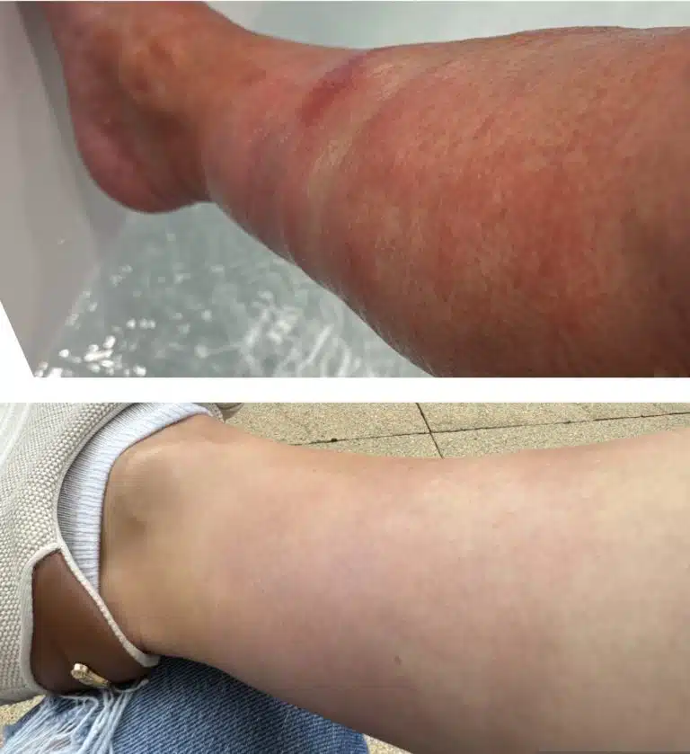 The rest did me the world of good – here is a picture of my legs after 19 miles walking on day 4 and how much they had improved just 7 days later…..